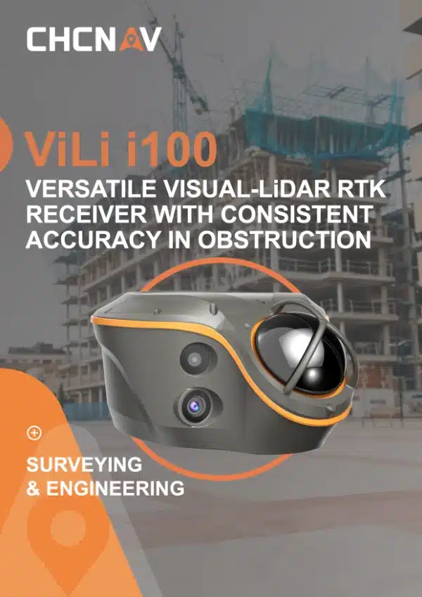 The ViLi i100 is CHCNAV’s flagship GNSS RTK receiver, designed for reliable performance in both outdoor and indoor environments. It combines advanced satellite filtering, the enhanced SFix 2.0 positioning engine, and integrated Vi-LiDAR technology to deliver accurate results where standard GNSS units often fail.