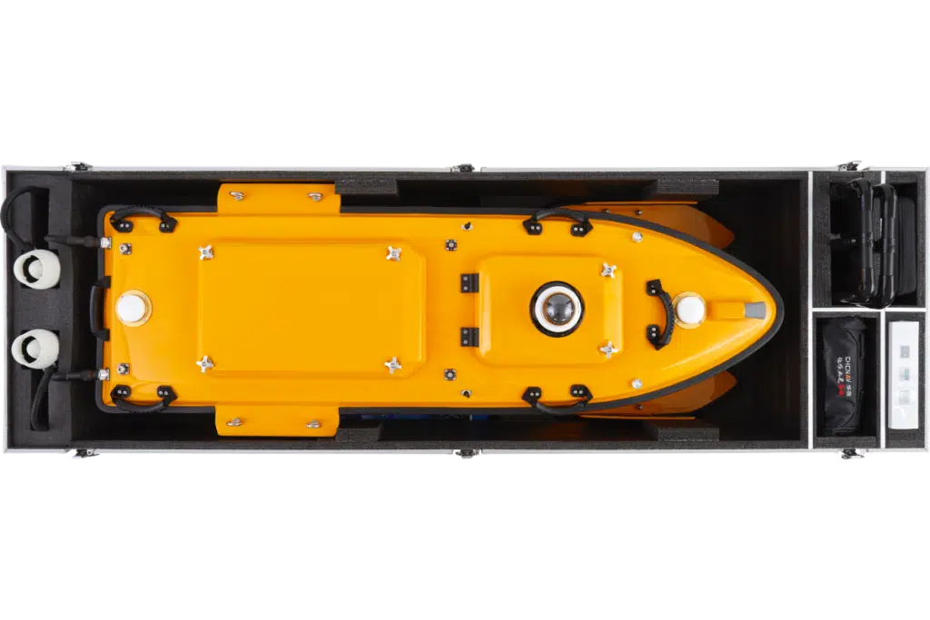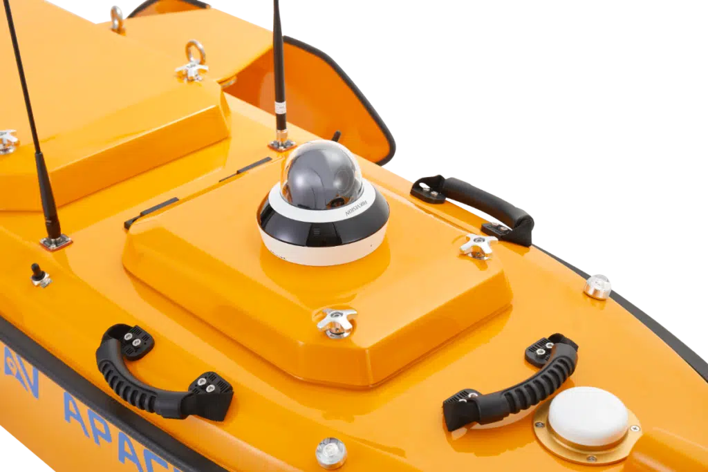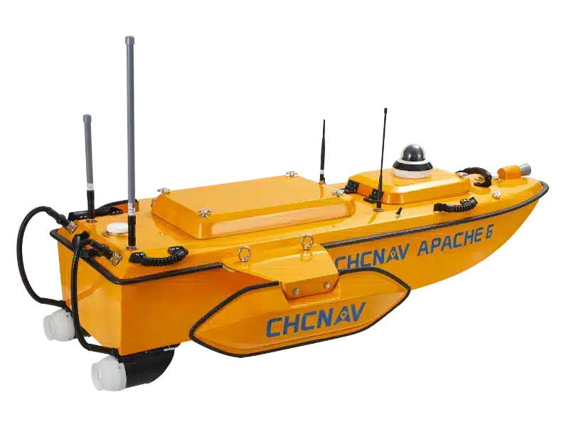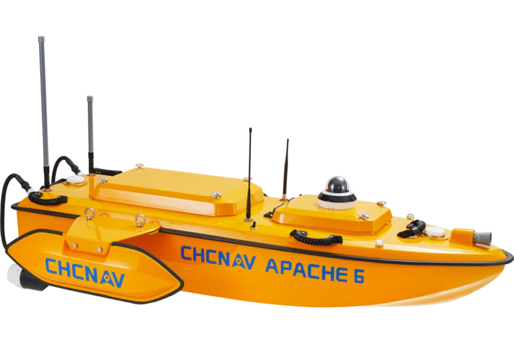 The APACHE6 USV is a fully integrated innovative solution for 3D bathymetric survey, underwater object positioning, offshore construction, underwater archaeology, and wrecked rescue. The APACHE6 is powered with a high-performance dual propeller system, ensuring a stable constant automatic cruise speed of up to 2.5m/s (7.6 fps). The survey projects can also be completed in manual mode using the APACHE6 remote control panel over a 2 km distance. The APACHE6 multibeam USV reduces survey time, improves work efficiency, and outputs high-resolution data to match the most demanding marine survey project requirements.