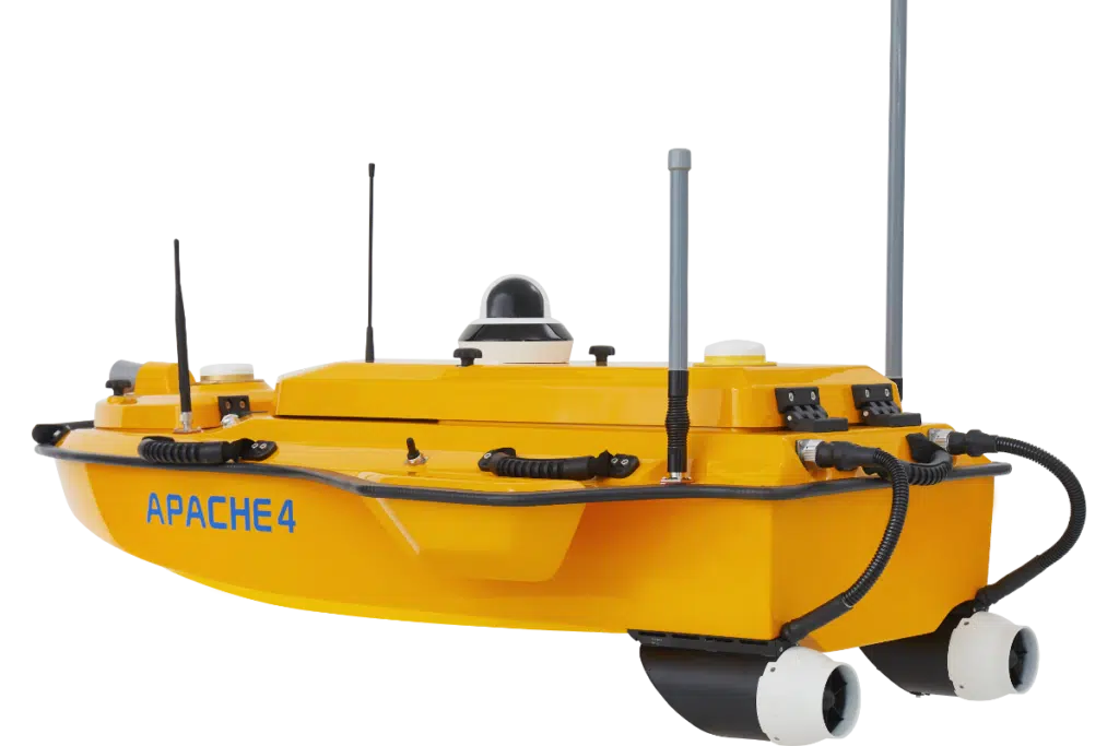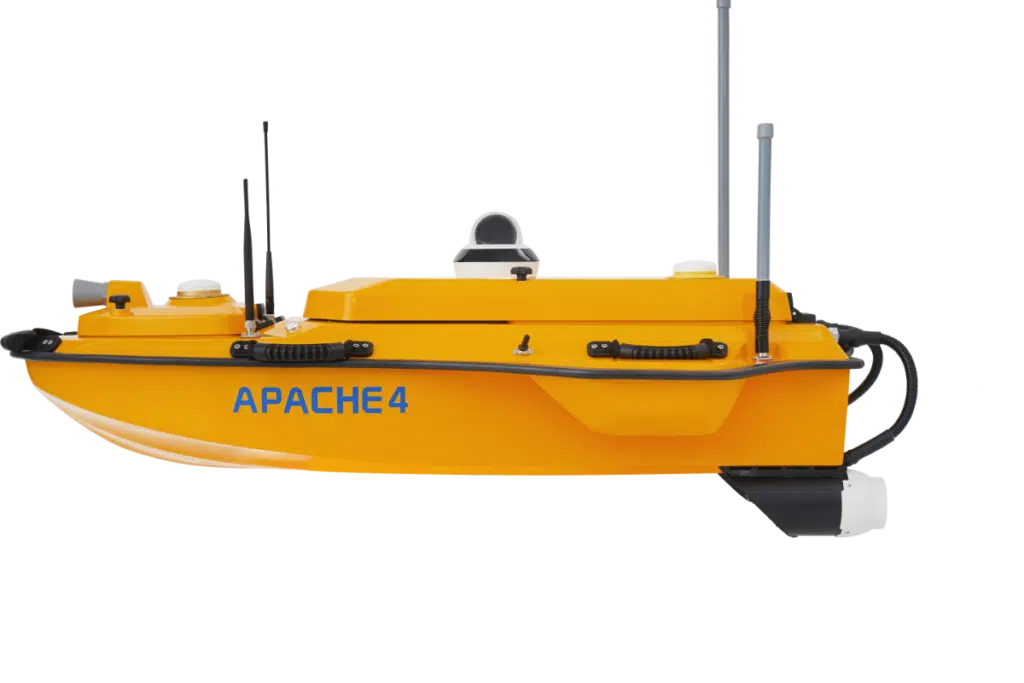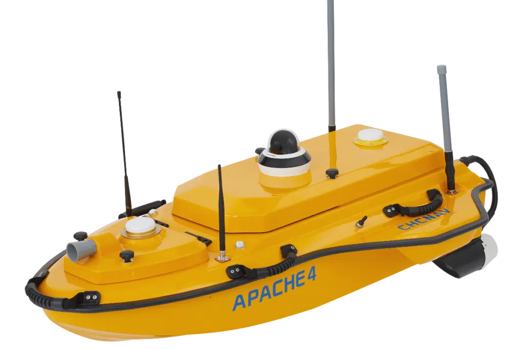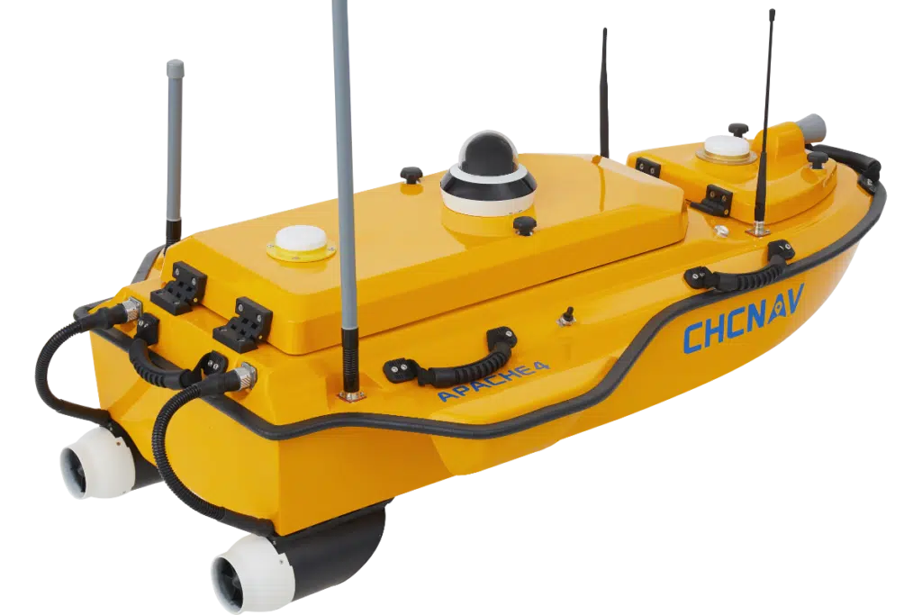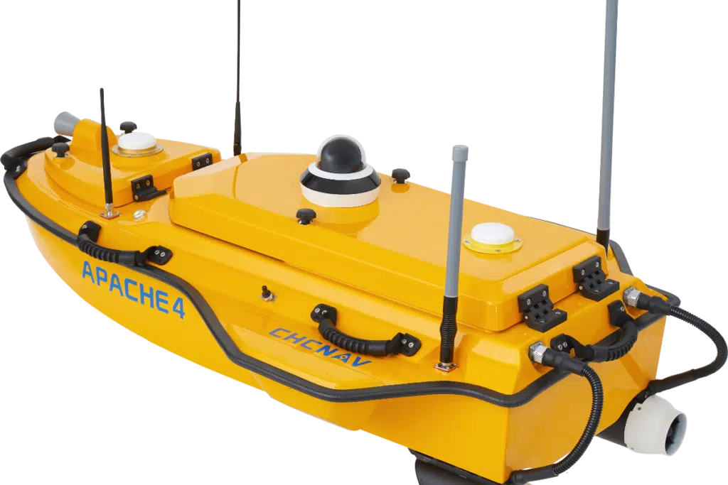 The CHCNAV APACHE 4 is an Unmanned Surface Vessel (USV) that supports a wide variety of Acoustic Doppler Current Profiler (ADCP) systems available on the market. It offers an unmanned operation solution with a shallow draft, high navigational accuracy, and stable hovering for hydrologists when measuring water flow velocity and discharge of a current section. Very compact, it enables easy handling at the mission site, facilitates safe launching, and convenient transportation by car.