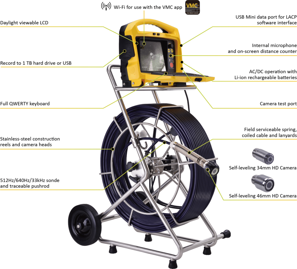 The vCam-6 HD inspection system from Vivax-Metrotech gives you the flexibility to cover a range of inspections including municipal collection systems, residential plumbing, indoor commercial lines, and lateral lines from three inches up to eight inches in diameter. Our camera systems use the latest technology packaged in a rugged, lightweight, compact profile made specifically for the harsh conditions related to sewer lateral inspections.  All Vivax-Metrotech camera systems are backed up by a full one-year warranty, on-site training, and local support through our dealer network.