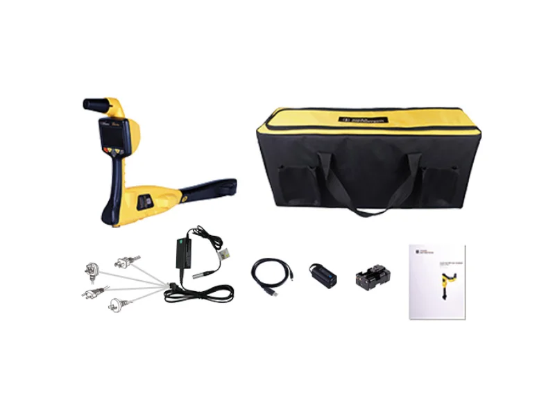 The 10-Watt broadband transmitter has selectable induction and direct connection frequencies from 98Hz to 200kHz, SD mode (Signal Direction), fault find and true resistance measurement up to 1 Mohm. The two inch by one-inch dot matrix display with LED backlight shows output current, connection type, volts, resistance, frequency, volume, battery condition and high voltage warnings.